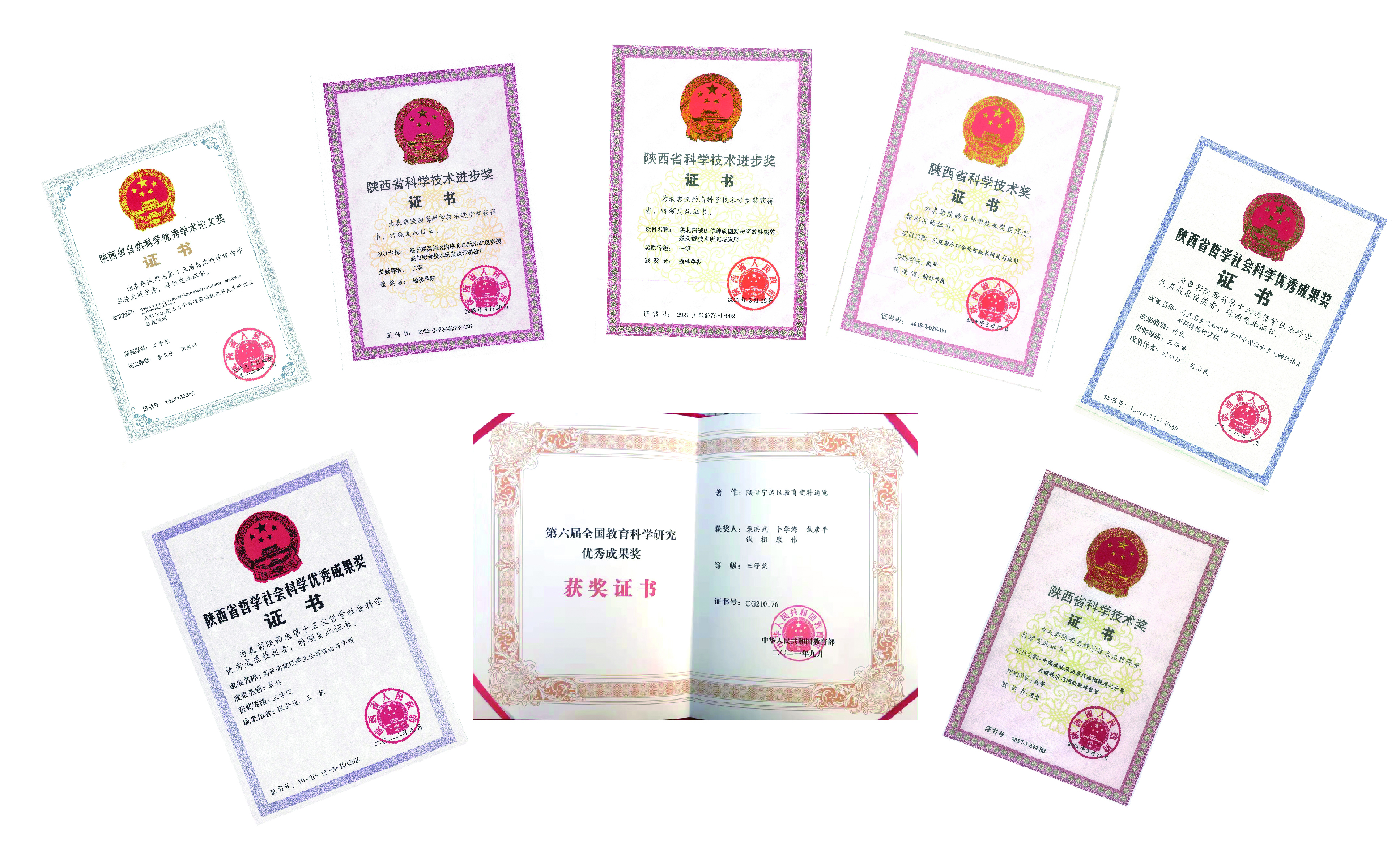 五年来,全校教师不断调整和优化科研方向,紧扣榆林市10条产业链,围绕“三文”“三黄”和“三化”开展研究,产出了一大批具有重大推广价值的科研成果。五年来,全校师生共发表核心以上论文1800余篇,出版学术专著128部,授权专利1110项;获得省级及以上科研成果奖励39项。2021年实现了国家奖的历史性突破,康伟教授参与编撰的《陕甘宁边区教育史料通览》著作获得第六届全国教育科学优秀成果奖,该奖项是bat365首个国家级奖项;2022年bat365获得陕西省科学技术奖3项,实现省级奖项三大奖种全覆盖。