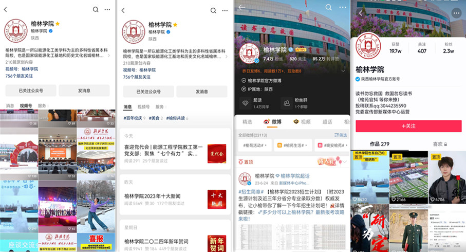积极开拓中省主流媒体宣传渠道,围绕学校改革发展的重大成果,科学选题,精心策划,推出有深度和影响力的宣传报道。在中省市《光明日报》《中国教育报》《陕西日报》《三秦都市报》《榆林日报》等30多家媒体刊发涉校正面宣传800余条,对学校高质量发展、科学研究、教育教学、招生就业、办学特色、办学成果、大学生科技创新、大学生志愿服务等方面的成果进行推介,形成了良好的对外宣传氛围。