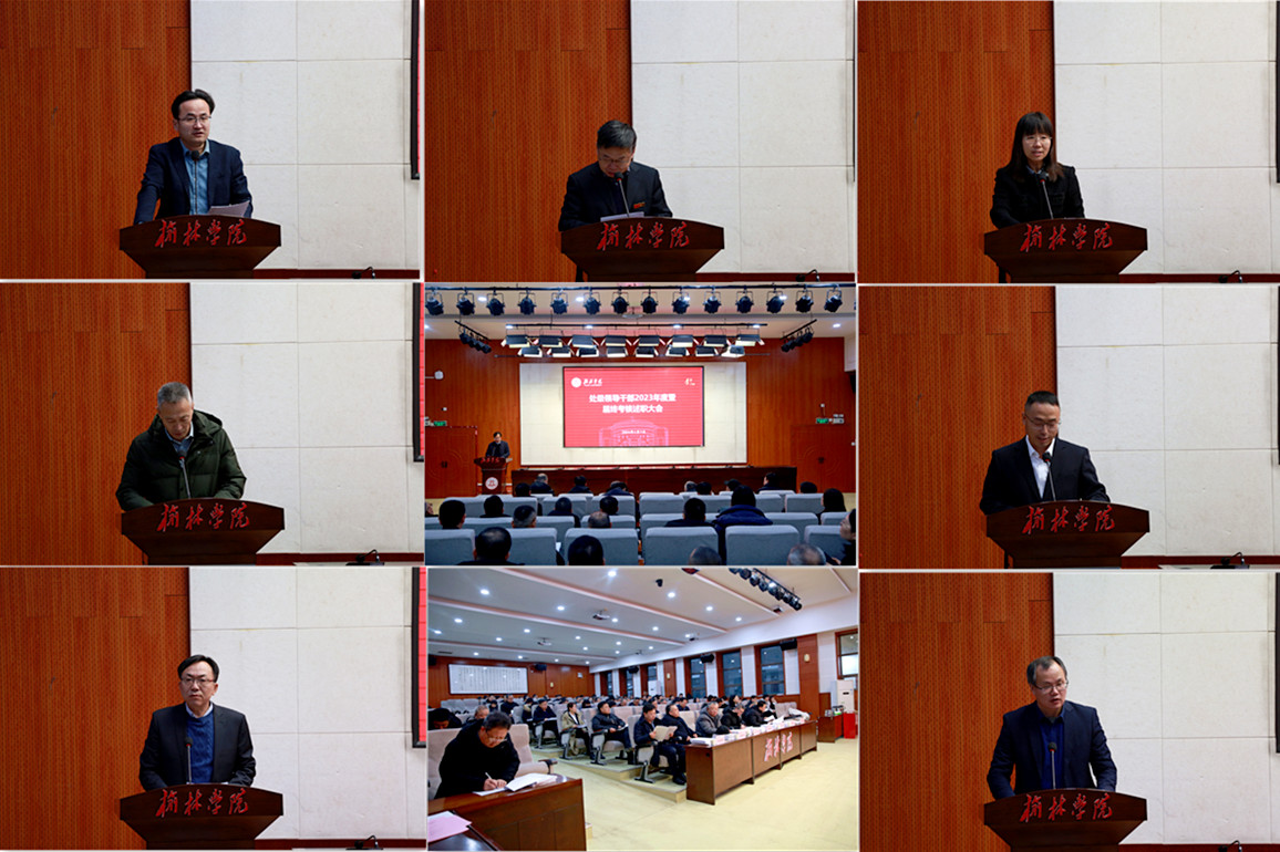 张新柱指出,2023年学校党建工作有七大特点,一是政治意识更加增强。大家都坚定正确政治方向,扎实开展主题教育,用党的创新理论武装头脑指导工作,明确“两个确立”,不断提升政治能力。二是党建带动更加有效。各基层党组织都能够以党建引领提升管理服务效能,抓好自身建设,通过骨干带动、活动带动,凝心聚力促进事业发展。三是党建融合更加深度。各党总支结合自身实际,很好的把党务和业务结合。四是组织力落实更加强化。党委安排部署的新生教育三部曲、“五乐育人”等,各级党组织能切实加强组织领导、周密安排部署,高质量抓好落实。五是干部作风更加硬朗。通过解放思想、作风建设、能力提升,经过百年校庆、审核评估历练,干部作风明显优化。六是立德树人更加提质。各级党组织都能够把立德树人成效作为检验一切工作的根本标准,学校连续两年在教学、科研、招生、就业、服务社会等各个方面均取得了亮眼的成绩,这是通过党建推动追赶超越取得的成效。七是党建水平更加提升。大家都能够聚焦高质量党建目标任务,寻找抓手有效提升基层党建规范化、党建业务专业化水平,从而引领各项业务高质量发展。