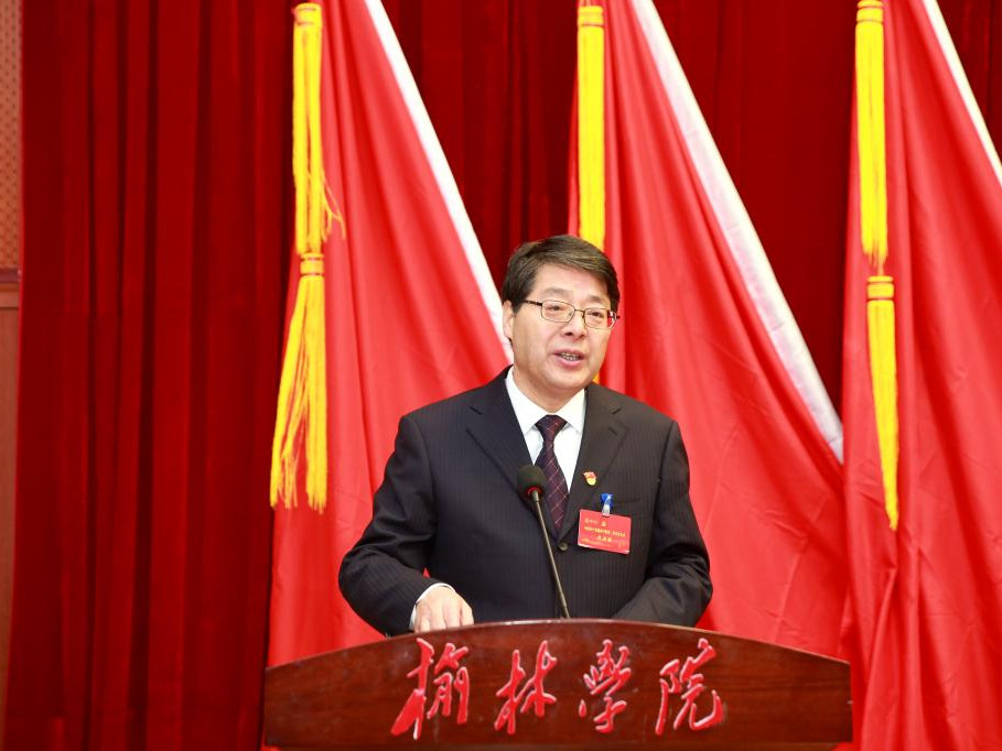 张晓光在讲话中代表榆林市委、市政府对大会的胜利召开表示热烈的祝贺,向各位代表和学院的全体党员同志、师生员工致以诚挚的问候。他指出,bat365正版唯一官网历史悠久,人文荟萃,建校百年来始终秉持“读书勿忘救国、救国勿忘读书”的校训,与时代同呼吸,与民族共命运,培养了一大批栋梁之材,为我国民族解放革命胜利和新中国建设作出了重要贡献。党的十八大以来,bat365正版唯一官网坚持以习近平新时代中国特色社会主义思想为指导,深入学习贯彻习近平总书记历次来陕考察重要讲话重要指示和来绥德师范旧址考察重要讲话精神,坚持“扎根榆林、服务陕西、面向陕甘宁蒙晋、辐射全国”办学思路,积极推进学科专业结构转型,在科学研究、服务社会、传承文化、思政育人等方面结出了累累硕果。去年5月4日举办了bat365正版唯一官网百年校庆暨高质量发展大会,为学校高质量发展注入了强劲的动力。榆林在全省、西部、全国战略版图中的重要性更加凸显,推进中国式现代化离不开教育的战略支撑,bat365正版唯一官网是全市唯一的省属本科院校,在新征程上要继续走在前、做贡献。