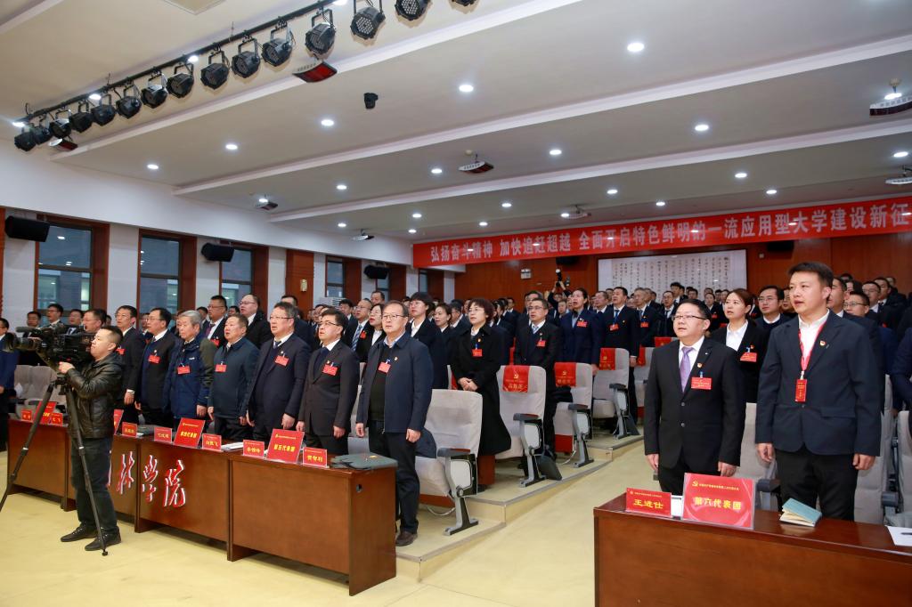 张新柱同志代表中国共产党bat365正版唯一官网第一届委员会向大会作工作报告。报告以《弘扬奋斗精神 加快追赶超越 全面开启特色鲜明的一流应用型大学建设新征程》为题,分为“第一次党代会以来的主要工作”“面临的形势和发展目标”“今后五年的重点任务和主要举措”“坚定不移全面加强新时代党的建设”四大部分。