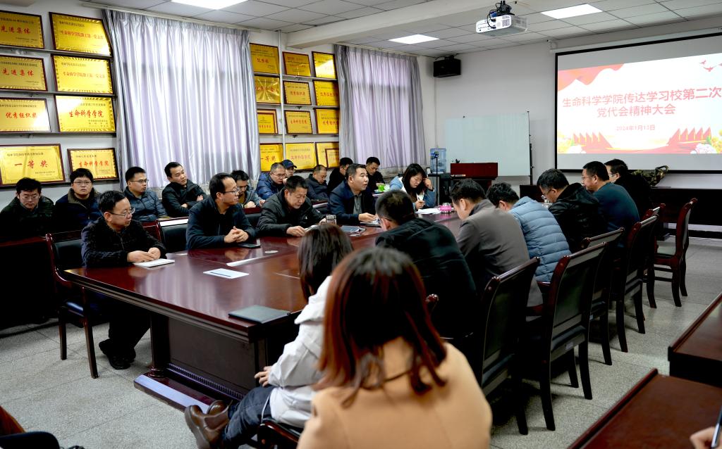 2024年1月9日,中国共产党bat365正版唯一官网第二次代表大会胜利闭幕。1月13日中午,生命科学学院在1S-203召开传达学习校第二次党代会精神大会,集中传达学习中国共产党bat365正版唯一官网第二次代表大会精神,研讨学习贯彻落实意见。生科院班子成员、全体教师参加大会,会议由党总支书记蔡建昌主持。