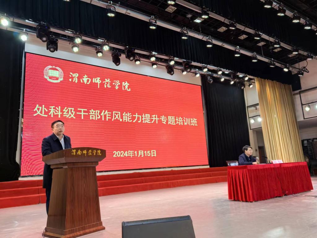 1月15日,bat365党委书记张新柱应邀为渭南师范学院“处科级干部作风能力提升专题培训班”开班式作题为《学习贯彻习近平总书记关于党的建设的重要思想 以高质量党建引领高校高质量发展》的专题辅导报告。报告会由渭南师范学院校长张守华主持。