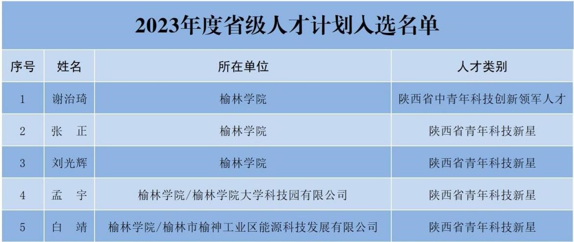 获批高层次科研成果奖项11项,市厅级奖励160余项。1人入选陕西省中青年科技创新领军人才、4人入选陕西省青年科技新星、2人入选省级人才托举计划、4人入选省级秦创原省级人才库、14人入选榆林市“第一批科技之光”项目、11人获评榆林市优秀科技工作者、16人获得榆林市优秀青年科技工作者,14人获得榆林市人才托举计划支持。教师共发表高水平论文320余篇,授权发明专利53项。