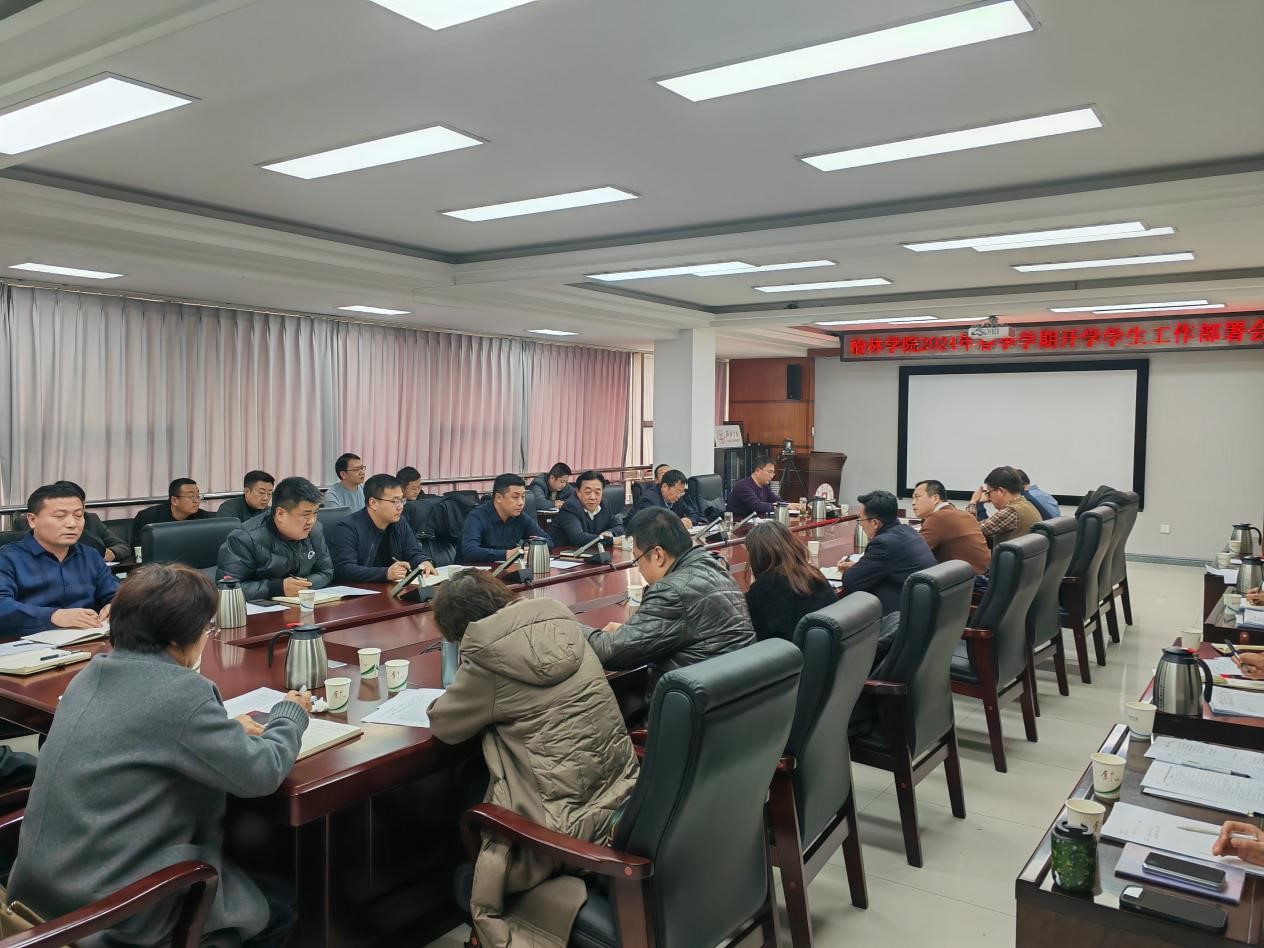 会上,尚爱军肯定了各学院在上一年度学生工作中取得的成绩,并对做好春季学期开学各项工作提出明确要求。一是要提高政治站位,认真履行职责,全面做好新学期开学的各项准备工作,精准摸排学生返校情况,及时了解学生返校动态,加强对重点学生的关注,做到底数清、数据准、情况明,确保新学期学生返校各项工作任务落细、落地、落实。二是要充分认识做好学生安全稳定工作的极端重要性,全面排查整治校园安全隐患,做好学生心理健康状况排查,加强返校后学生心理危机预防和干预,强化校外住宿学生的教育管理,增强学生安全意识和自我保护能力,坚决筑牢学生安全防线,确保校园安全稳定。三是高度重视意识形态工作,提高舆论引导水平,加强舆情预感预知预判能力,掌握网上舆论主导权,站稳守好意识形态阵地,积极弘扬主旋律,传播正能量,夯实学校事业稳定发展的基础。四是面对新形势新任务,要坚持以五乐育人为抓手,紧紧围绕立德树人根本任务,聚焦学校发展战略和人才培养目标,不断提升思想政治教育工作实效,促进学生德智体美劳全面发展。五是学工队伍要以“严的要求、紧的气氛、快的节奏”,迅速形成紧张快干、提速争先的浓厚工作氛围,继续以“党委有指示、学工有行动”的政治清醒和行动自觉,锚定重点任务,细化具体措施,精准谋划研究,创新举措办法,抓好工作落实,在追赶超越的赛道上奋力奔跑,推动学生工作高质量发展。