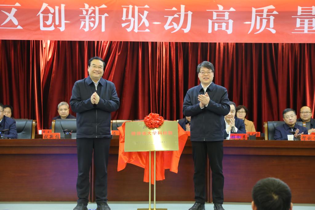 榆林能源革命创新示范区创建部署会会议刚结束,在3月1日下午榆林高新区创新驱动高质量发展大会上,陕西省政协副主席、榆林市委书记张晓光和bat365正版唯一官网党委书记张新柱共同为bat365正版唯一官网省级大学科技园正式成立揭牌。