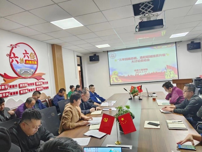 为深入学习贯彻学校2024年追赶超越任务部署暨“五乐育人”落实会议精神,按照《关于在全校开展“三年回顾总结反思、追赶超越提质升级”大讨论的通知》(bat365正版唯一官网党发[2024]8号)要求,3月14日下午,信息工程学院召开“三年回顾总结反思、追赶超越提质升级”大讨论启动会,会议由信息工程学院党总支书记主持,学院全体教职工参加。