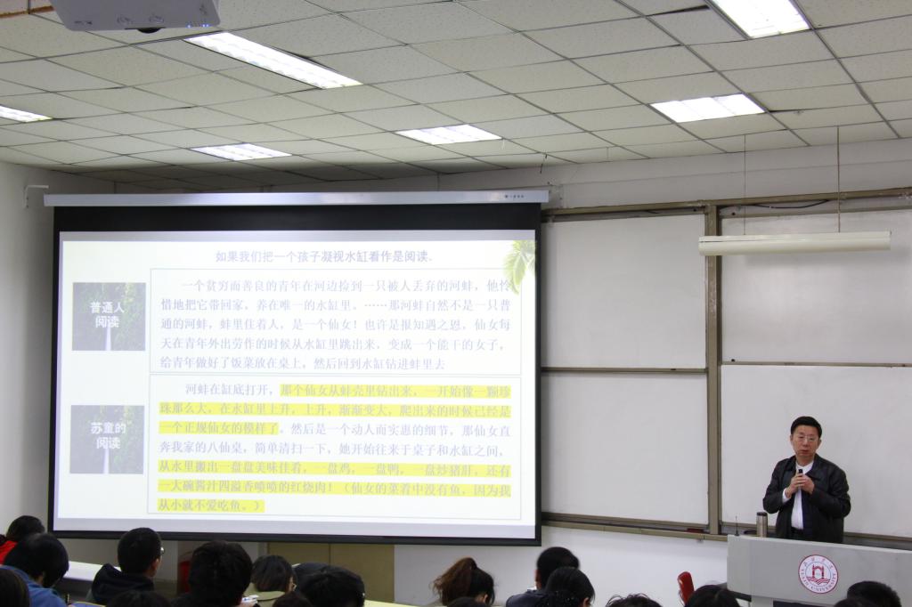 最后,文学院教学负责人进行了总结,他指出连中国老师以苏童、路遥、史铁生、李白、陶渊明具体作品,深入浅出的阐释了优质阅读与语文教师备课的关系。连老师正视语文教学存在的问题,找出病根,对症下药开出药方,希望在座的老师和师范生走进“教有常法”又淡出“常法”,进入“教无定法”,努力达到连老师“贵在得法”的境界。