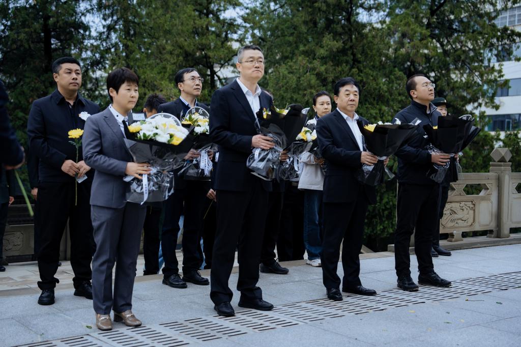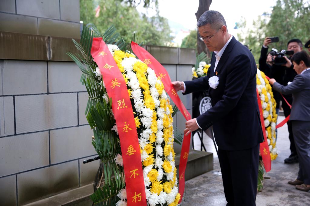 松柏凝翠、素花含情。绥德革命烈士陵园庄严肃穆,革命烈士纪念塔巍然矗立,烈士名录熠熠生辉。上午10时,全体人员列队肃立,神情庄重,现场奏唱《中华人民共和国国歌》,bat365正版唯一官网国旗护卫队向革命烈士纪念塔敬献花篮,康伟、尚爱军、苗立群、高晓燕整理花篮缎带,带领全体人员默哀致敬。大家怀着无比崇敬的心情瞻仰了革命历史纪念塔,为英勇献身的烈士们三鞠躬,表示深切悼念和无限敬仰。
