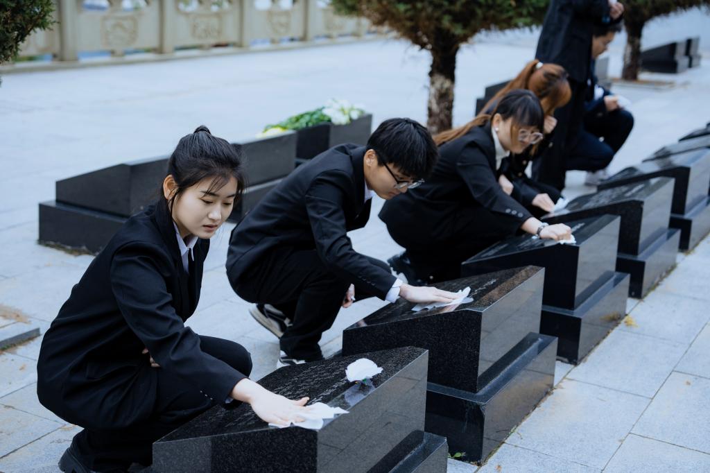 革命先烈的拳拳爱国之心,共产党人的铮铮誓言,时刻砥砺后辈牢记使命、勇毅前行。随后,现场师生移步李子洲老校长陵墓前敬献鲜花,鞠躬致敬,将佩戴的小白花依次摆放在各革命烈士墓碑前,并擦拭墓碑,有序参观纪念碑、纪念馆。