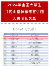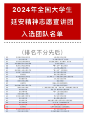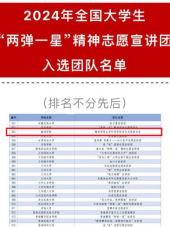 近日,《2024年全国大学生井冈山精神志愿宣讲团入选团队名单》《2024年全国大学生延安精神志愿宣讲团入选团队名单》《2024年全国大学生“两弹一星”精神志愿宣讲团入选团队名单》公布,bat365青年志愿者联合会糖果小分志愿队、艺术学院志愿者分会志愿服务队、生命科学学院青年志愿者协会三支团队从全国千余支团队中脱颖而出,成功入选。
