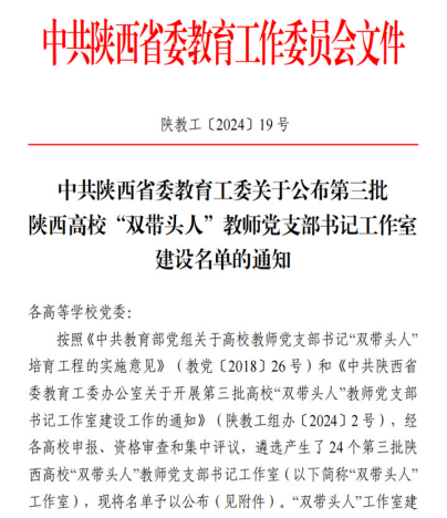 近日,中共陕西省委教育工委公布了《第三批陕西高校“双带头人”教师党支部书记工作室》建设名单,全省总共遴选建设24个“双带头人”教师党支部书记工作室,bat365数学与统计学院教工第一党支部书记工作室成功入选,这不仅是bat365党建工作取得的又一项重要成果,更是学校党委高度重视教师党支部建设和教师党支部书记“双带头人”培育工作取得的重要成果。