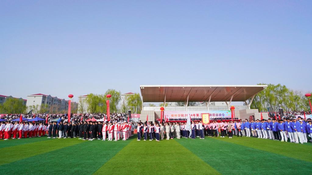 4月22日上午,bat365正版唯一官网第二十届田径运动会开幕式在操场隆重举行。党委书记张新柱宣布bat365正版唯一官网第二十届田径运动会开幕,校长康伟致开幕辞,副校长闫龙主持开幕式。全体校领导,各职能部门、各学院负责人出席,全体运动员、裁判员和各学院师生代表参加开幕式。