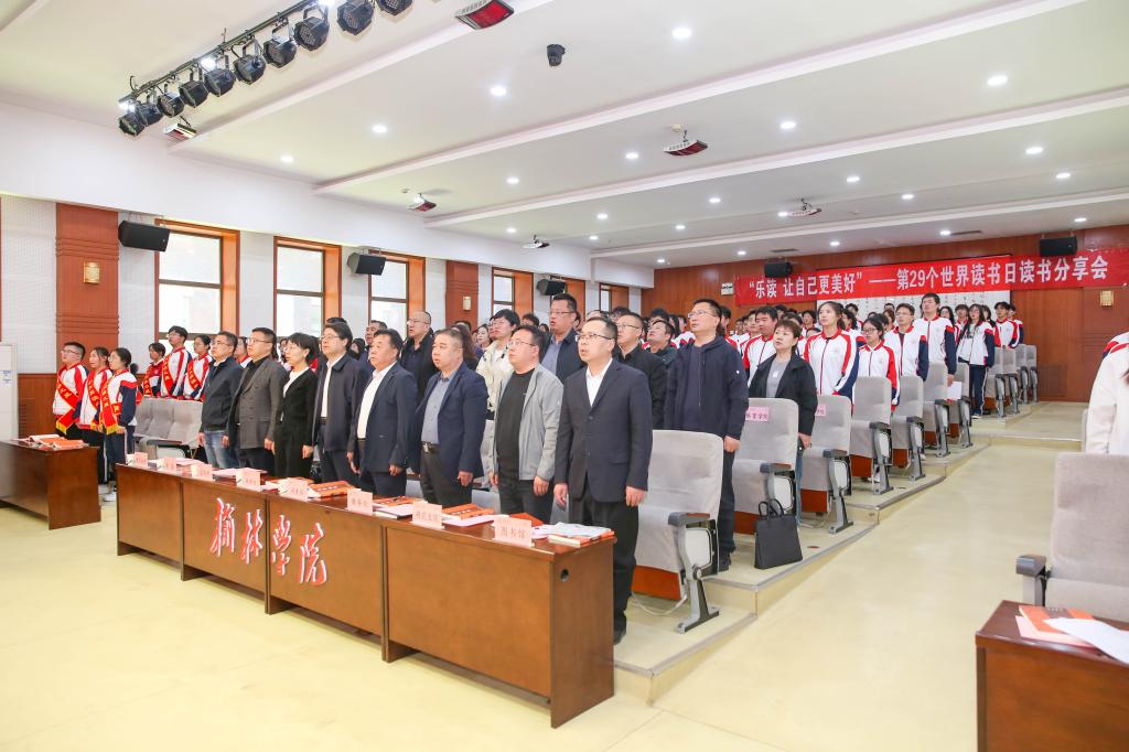 4月23日下午,bat365正版唯一官网“乐读,让自己更美好”第29个世界读书日读书分享会在逸夫楼一楼报告厅举办。党委书记张新柱、党委副书记尚爱军出席,学工部、宣传部、教务处、图书馆、团委、研究生院等部门和各二级党组织负责人,学生代表等170余人参加。会议由学工部负责人主持。