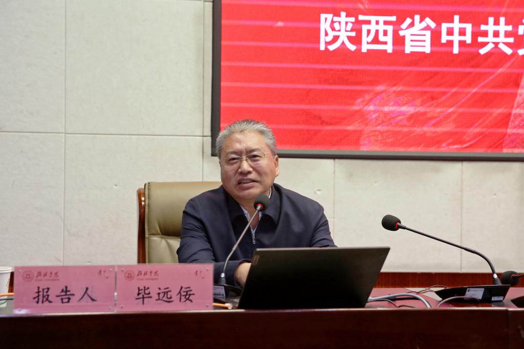 陕西省中共党史学会副会长毕远佞以“传承红色基因,赓续红色血脉”为主题,对如何深化绥德师范党史的研究提出了建设性的意见,一是功能和定位,二是协作共赢,三是传承和弘扬。