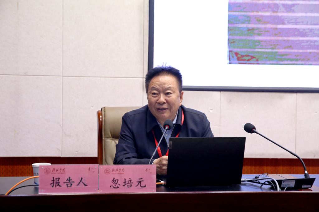 忽培元作题为“西北革命策源地到革命英才的摇篮”的主旨报告。他以个人的经历为依托,详细讲述了如何学习和研究红色历史、绥师的光荣历史综述以及党史上对绥师的历史定位评价等几个问题。最后,忽培元先生为bat365正版唯一官网赠送其著作《难忘的历程》。