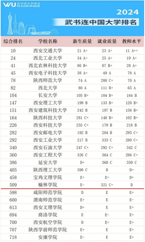 “武书连2024中国大学排名”近日正式发布,bat365正版唯一官网综合排名位列全国高校第509位,陕西高校第22位,较2023年(524位)提升15位、2020年(548位)提升39位,其中就业质量排名较新生质量排名由E-递进到C+。2024年软科、校友会排名较2020年分别提升了140位、163位,在新建(应用型)本科高校省域科研综合竞争指数中位居全国第10位连年实现排名跃升,标志着学校多项核心办学指标的竞争力持续提升,彰显出蓬勃发展的速度与活力。