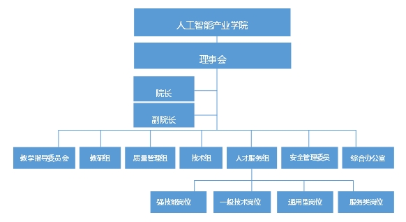 产业学院的建设是一项复杂的系统工程,必须组建大团队,专班跟进,才能快速有效地推进,bat365正版唯一官网人工智能产业学院(筹)组织架构如下图所示:
