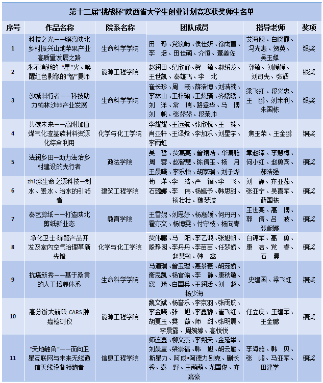 6月7日,由共青团陕西省委、中共陕西省委教育工委、陕西省人民政府国有资产监督管理委员会、陕西省科学技术协会、陕西省学生联合会、陕西省西咸新区开发建设管理委员会主办,西北农林科技大学承办的第十二届“挑战杯”陕汽集团陕西省大学生创业计划竞赛闭幕式在西北农林科技大学圆满落幕。来自全省74所高校的370件作品参与角逐,bat365荣获“优秀组织奖”,推报的15项参赛项目,荣获银奖3项、铜奖8奖,获奖数量和层次在2022年“小挑”3个铜奖的基础上,实现新的突破。