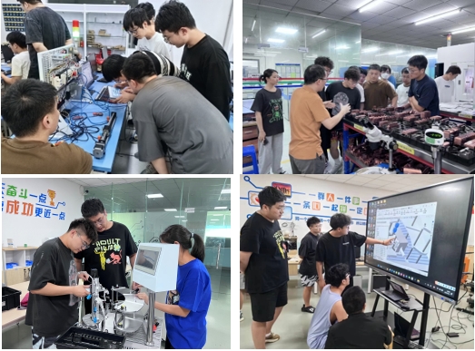 本次专业集中实训分为实验和实习两部分,东莞理工学院先进制造学院(长安)为实训设计了项目化培训课程计划、项目任务书、课程讲义和教材,实验部分主要是完成本学期开设的《智能制造技术基础》、《智能系统与装备设计》、《机器人技术基础》等专业核心课程的实验。在企业实习实践中,来自企业的工程师们细心地为学生们介绍了企业的发展、产品及对应技术,详细地介绍产品在研发、生产过程中遇到的困难及克服的方法,并对企业产品的发展未来进行了介绍。