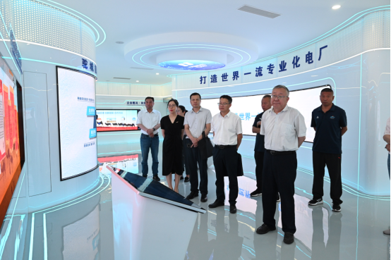 张晓一行首先参观了华电榆横电厂的企业智慧展厅、创新工作室、安全体验培训室,了解企业发展历程、生产经营、规模效益等情况,对该电厂为“打造世界一流专业化电厂”而采取的数字赋能、科技驱动所取得的一流业绩表示高度赞扬。