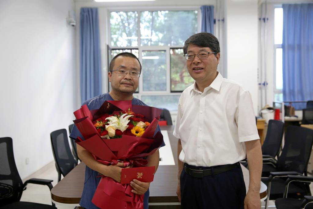 张新柱还看望慰问了化学与化工学院刘慧瑾和毕智高两位老师,为他们送去了鲜花和慰问金,详细询问了他们工作和家庭生活情况,充分肯定了两位老师在教学第一线的辛勤付出,对她们为学校教育事业发展所做的努力表示感谢。张新柱强调,当前学校已经进入努力实现更名大学的关键时期,广大党员同志要进一步发挥战斗堡垒和先锋模范作用,带动全校师生员工万众一心,同向同行,围绕立德树人根本任务,把教学、科研等各项工作做细、做实、做强,做出特色,做出亮眼的成绩。
