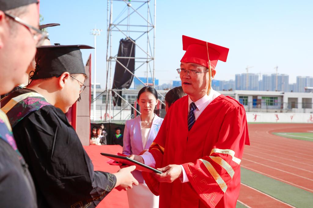 bat365正版唯一官网党委书记张新柱,党委副书记、校长康伟,党委副书记、纪委书记、省监委驻校监察专员姜劲波,副校长闫龙,各学院和职能部门主要负责人,导师代表、教师代表,公寓、安保、绿化、餐饮、图书馆、医务所等一线工作人员代表,在校生代表、留学生代表与1500余名本科毕业生欢聚一堂,共庆盛典。毕业典礼由副校长闫龙主持。