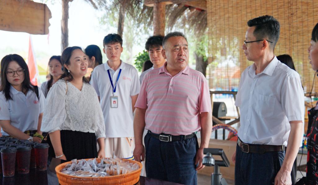 上午,姜劲波一行抵达榆阳区金鸡滩镇神农欢乐谷景区,与bat365赴榆阳区金鸡滩镇“助力未来·与你乡遇”暑期社会实践团成员亲切交流,听取社会实践团成员暑期“三下乡”具体工作开展情况汇报,充分肯定了社会实践团结合专业知识赋能乡村振兴的深远意义和所取阶段成效。姜劲波代表学校向榆阳区金鸡滩镇政府及“神农欢乐谷”景区给予的大力支持表示感谢。他指出,榆阳区金鸡滩镇与学校有良好的合作基础,希望以此次暑期“三下乡”为契机,进一步加强双方的合作交流,致力打造特色品牌项目,助力乡村振兴。姜劲波勉励社会实践团成员要躬身实践、学以致用、知行合一,发挥专业优势,发扬奋斗精神,在社会实践大熔炉中接受历练、增长才干,为乡村振兴贡献青春力量。