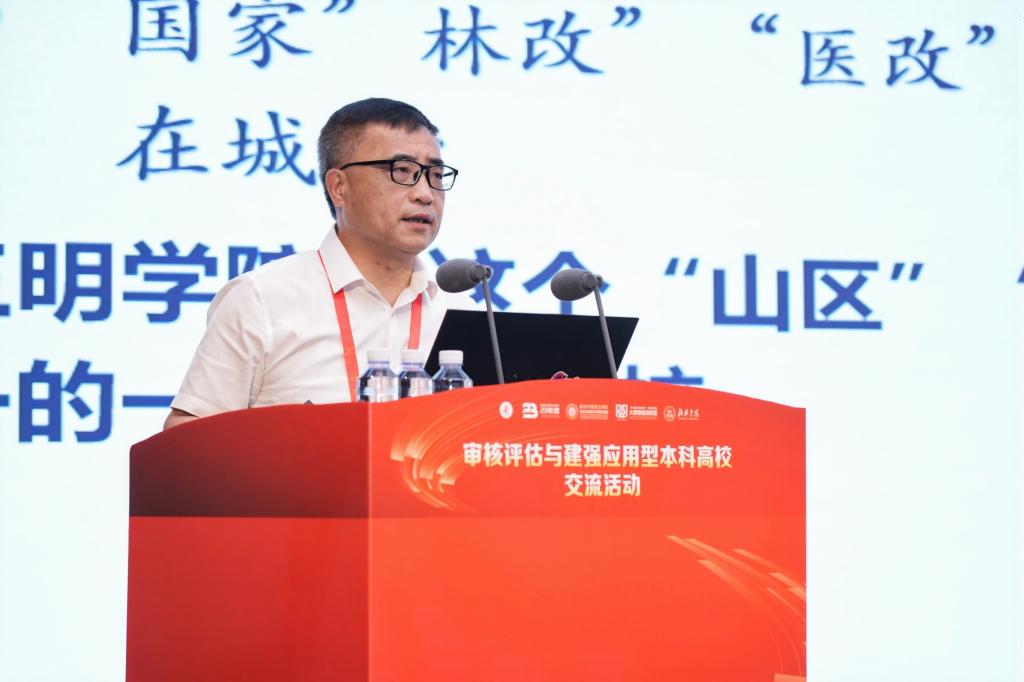 湖南工学院党委书记曹执令《后疫情时代地方应用型大学高质量发展的挑战与应对》专题报告从“新使命:高质量发展是新时代地方应用型大学发展的时代要义”“新挑战:后疫情时代地方应用型大学高质量发展的现实困境”“新路径:后疫情时代地方应用型大学高质量发展的应对之策”三方面切入,引用习近平总书记关于教育强国的论述“纵观人类历史,教育兴则国家兴,教育强则国家强。世界强国无一不是教育强国,教育始终是强国兴起的关键因素。”深刻诠释了“高等教育高质量发展是建设社会主义现代化强国的必然要求”与“地方应用型大学高质量发展是建设高等教育强国的必然要求”。并从世界高等教育改革发展趋势、中国高等教育发展现状、地方应用型大学自身发展三方面精准分析了建设教育强国龙头是高等教育,高等院校就要肩负着特殊而重要的责任与使命。他指出,应用型本科高校作为我国高等教育体系中的重要组成部分,是推动我国高等教育强国和中国式现代化建设不可或缺的力量,承载着培养适应区域经济社会发展和产业行业需求的高素质应用型人才的重要使命,具有推动地方高质量发展的天然优势。应用型本科高校发展新质生产力是推动高质量发展的内在要求和重要着力点,必须从全要素、全流程、全业务、全域地进行教育教学改革,加快推进自身内涵式建设与特色化高质量发展。