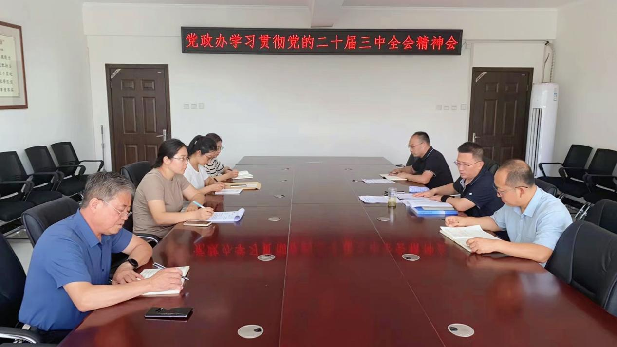 8月4日上午,办公室党支部召开集体学习会议,传达学习党的二十届三中全会精神。办公室党支部书记崔少波主持会议,办公室党支部全体成员参加。