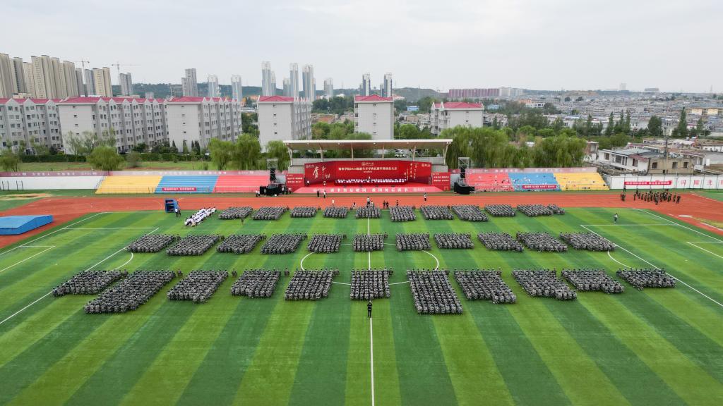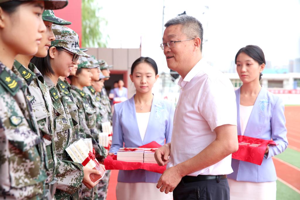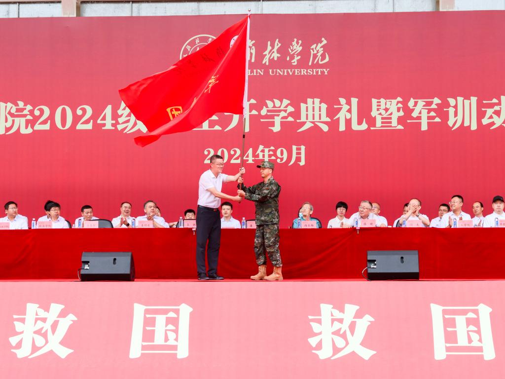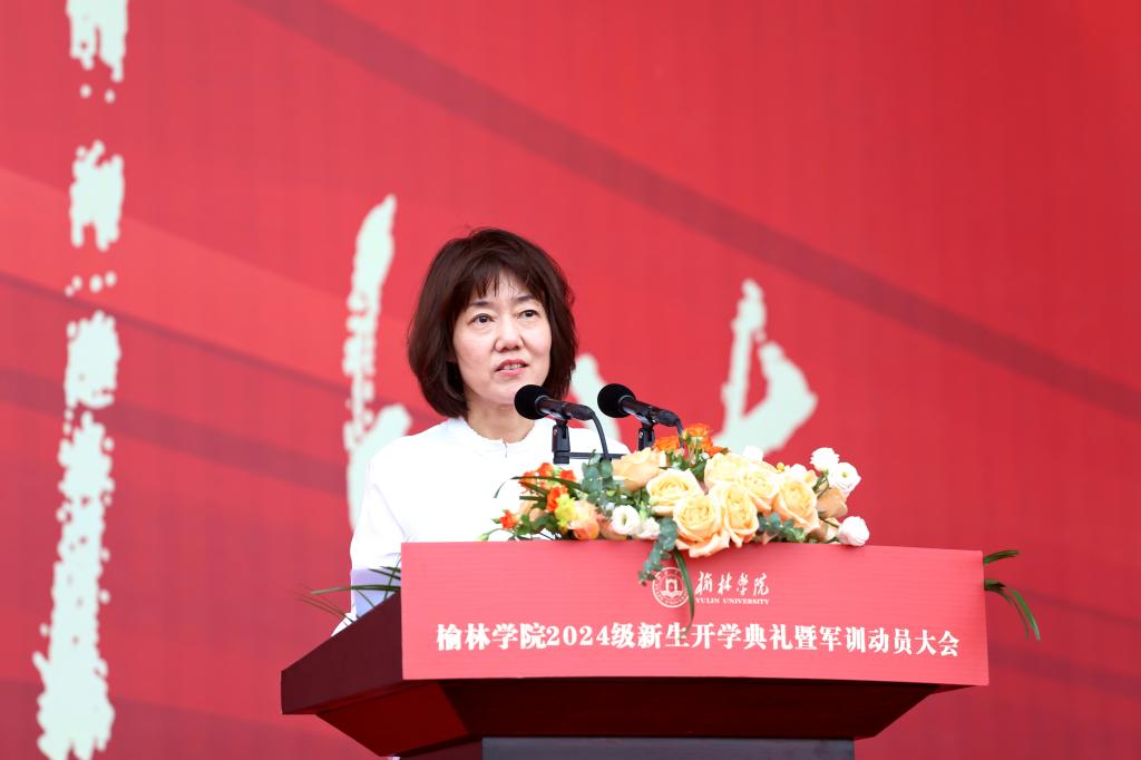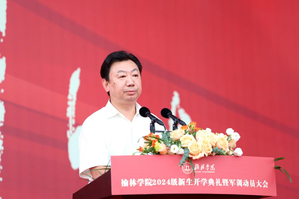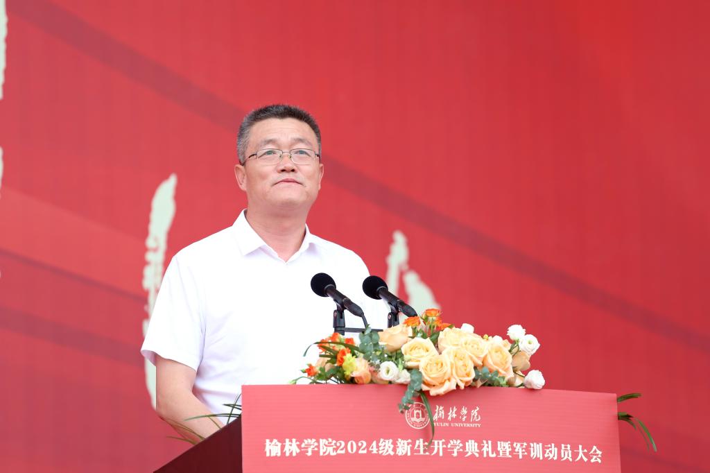 红衣落尽秋风生,丹桂飘香迎君来。9月1日上午,bat365在校田径场隆重举行bat365正版唯一官网2024级新生开学典礼暨军训动员大会。党委副书记、校长康伟致迎新辞并向军训团授旗,同时为新生代表赠送《平凡的世界》和佩戴校徽。党的二十大代表、全国道德模范、全国三八红旗手、全国优秀共产党员、最美巾帼奋斗者、bat365校外辅导员路生梅,副校长张晓,党委副书记、纪委书记姜劲波、副校长闫龙,武警榆林支队执勤一大队中校政治教导员、bat365正版唯一官网军训团团长秦鹏在主席台就座。副校长马亚军主持。各二级学院院长、党总支书记、副书记,各有关部门负责人,2024级新生辅导员、班主任,全体参训教官及2024级全体本科生近3500人参加。