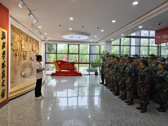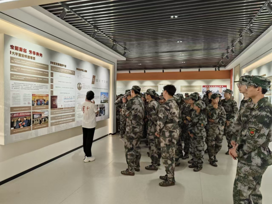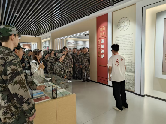 参观活动期间,校史馆内人头攒动,气氛热烈。新生在军训教官的带领下,随着学生讲解员的步伐,有序参观各个展区。从建校初期的红色根脉,到近年来全体榆苑人的追赶超越;从老一辈教育家的辛勤耕耘,到当代学子的创新突破;从艰苦创业自强不息的奋斗精神,到特色鲜明成果丰硕的非凡成就。一幅幅珍贵的照片、一件件历史的实物、一段段感人的文字,生动再现了学校在不同历史时期的辉煌成就和感人故事,吸引着大家停足注目,惊叹感慨。通过讲解员的深情讲解,全体新生对学校的悠久历史和深厚红色底蕴有了更加深刻的了解与认识,使他们更加坚定了自己的圆梦选择,更加明确了人生奋斗的目标方向。