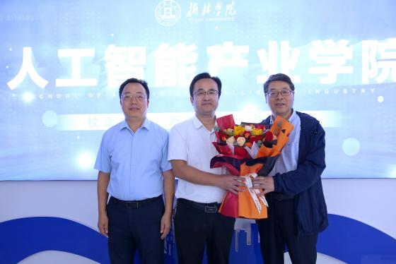 在能源工程学院实验室,张新柱向“中国国际互联网+大赛国赛铜奖”指导教师任立庆送上节日祝福。充分肯定了任立庆副教授在科技创新与指导学生竞赛方面所取得的可喜成绩,希望他继续攻坚克难,持续奋进,利用创新创业教育资源,大力推动产教研深度融合。