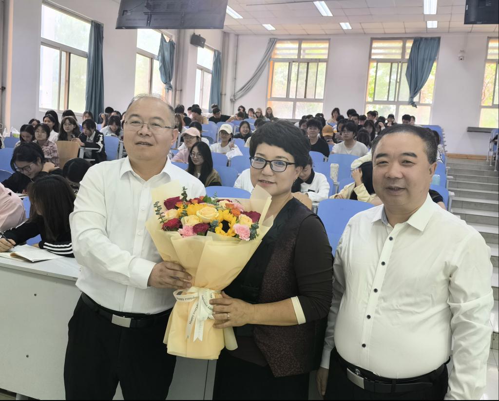 14点10分,闫龙走进教室,向杨星、芝春2位一线老师送上鲜花和问候,教室里同学们全体起立,共祝老师节日快乐并报以热烈的掌声,洋溢着温馨欢乐的气氛。