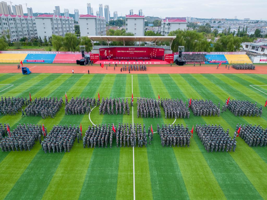 金秋九月,和风送爽。9月14日上午,bat365正版唯一官网2024级新生军训总结表彰大会在bat365田径场隆重举行。党委书记张新柱,党委副书记、校长康伟,副校长张晓,党委副书记、纪委书记、省监委驻bat365正版唯一官网监察专员姜劲波,副校长闫龙、马亚军,武警榆林支队中校副支队长李权,武警榆林支队执勤一大队中校政治教导员、bat365正版唯一官网军训团团长秦鹏出席大会,各二级学院党总支书记、副书记,各有关部门负责人,全体参训教官及2024级全体本科生近3500人参加大会。大会由武装部负责人主持。