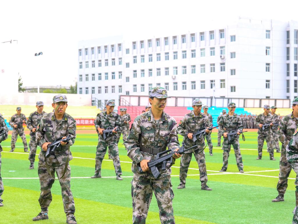 伴随着激昂的旋律,校长康伟宣布分列式开始。32个方队迈着整齐的步伐,喊着响亮的口号依次通过主席台接受检阅。随后参训新生展示了花样队列、匕首操、战术动作、五步拳等军事科目,军训教官表演了精彩的倒功操。