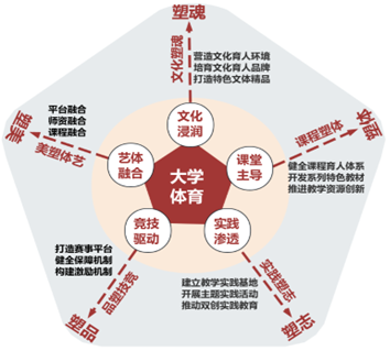 闫强教授完成的《文化传承、非遗赋能、身心发展:大学体育“五塑”育人体系构建与实践》成果以“健康第一”的教育理念为指导,将学生身心健康发展置于突出位置。成果通过深度挖掘中华优秀传统文化的育人价值,充分发挥民族传统体育的育人功能,以“文化传承,非遗赋能,身心发展”为主线,构建了以“文化塑魂、课堂塑体、实践塑志、竞技塑品、艺体塑美”为核心的大学体育“五塑”育人体系。