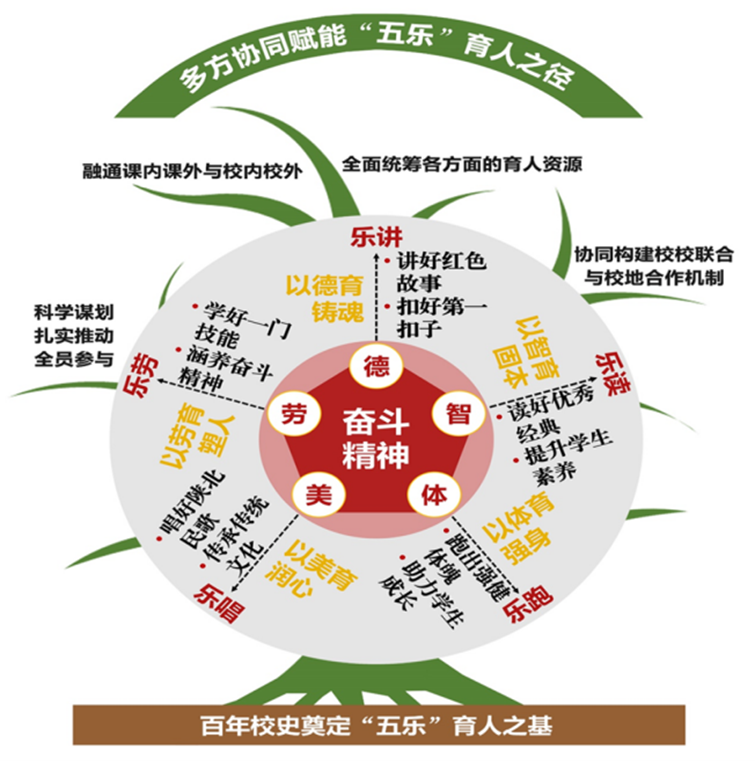 康伟教授主持的《百年筑基、奋斗铸魂、协同赋能:“五乐”育人体系的构建与实践”》的项目,以学校高质量发展的“一体两翼”路经中的“五乐”育人为主题,是贯彻党的教育方针、落实立德树人根本任务的生动体现。该成果遵循思想政治工作规律、教书育人规律和学生成长规律,坚持以学生为中心,全面考虑学生思想特点和发展需求,围绕“培养什么人、怎样培养人、为谁培养人”这一教育的根本问题,坚持以德立人,实施德育铸魂“乐讲”活动,指引学生坚定理想信念,勇担时代使命;坚持以智启人,实施智育提质“乐读”活动,促动学生品读诗书经典,加强优良学风建设;坚持以体健人,实施体教融合“乐跑”活动,推动学生强健身体素质、锤炼坚强意志;坚持以美化人,实施美育熏陶“乐唱”活动,教育学生传承传统文化、陶冶高尚情操;坚持以劳塑人,实施劳动促进“乐劳”活动,引导学生增强价值认同、磨砺意志品质。通过健全机制、明晰路径、整合资源,经过研究探索、系统形成与深化实践三个阶段,构建了具有鲜明特色的“五乐”育人体系,实现了德、智、体、美、劳全面发展的育人目标。这一成果为高校利用地方特色资源开展思想政治教育提供了可复制、可借鉴、可推广的经验。