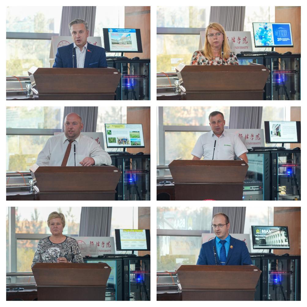 白俄罗斯国立农业技术大学副校长米拉诺维奇、白俄罗斯巴拉诺维奇国立大学学术副校长里特维斯卡娅、全俄豆类与制米作物研究所所长波鲁金、白俄罗斯国家科学院农业机械化科学与实践中心所长科姆拉赫、白俄罗斯国家科学院植物生长调节与发育实验室主任比利、白俄罗斯国立农业科学院生物技术和水产养殖学院院长古德拉维茨分别围绕人才培养、国际合作、科学研究等议题作专题报告。