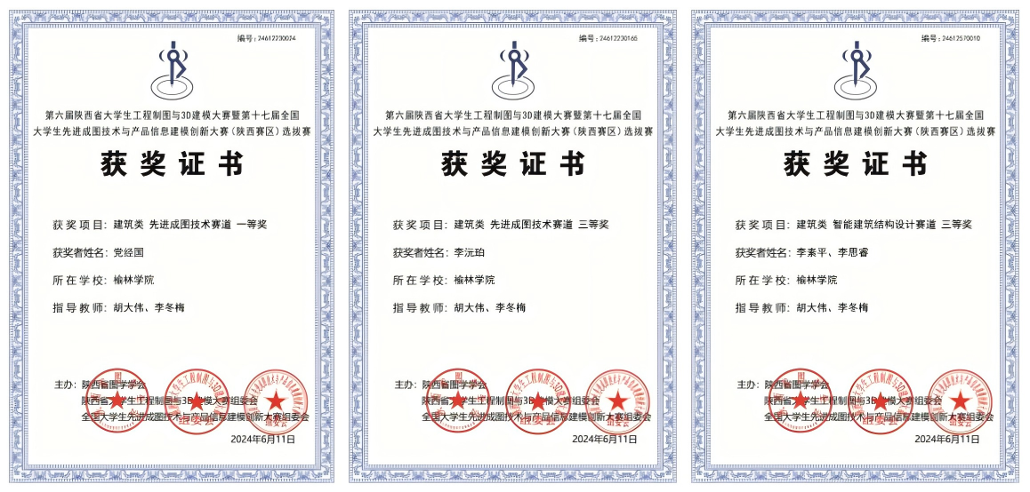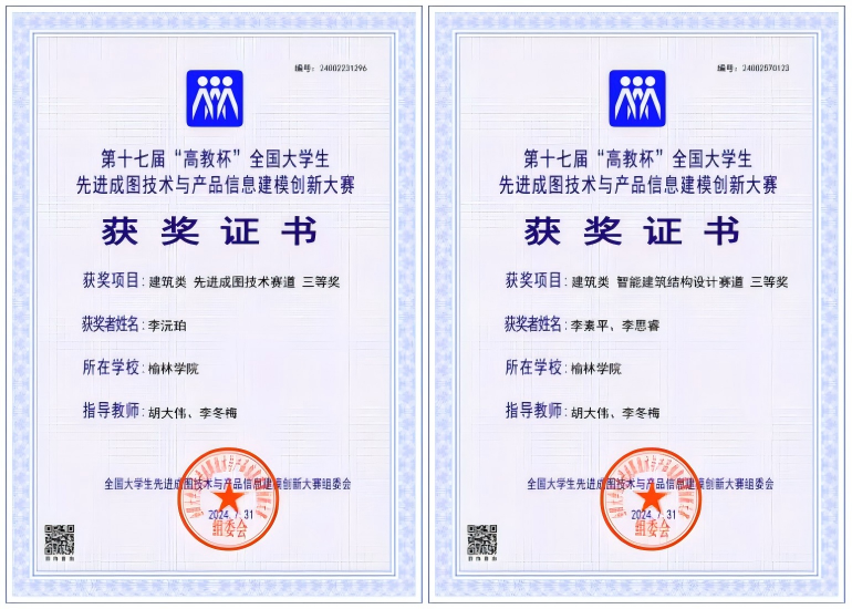 近日,第十七届“高教杯”全国大学生先进成图技术与产品信息建模创新大赛总决赛在贵州大学落幕。bat365正版唯一官网建筑工程学院胡大伟、李冬梅老师带领3名学生在陕西赛区西安明德理工学院分赛场与全国各高校学生同步参加比赛,经过激烈角逐斩获建筑类多个奖项。其中,在7月26日—7月29日的国赛中获先进成图技术赛道个人三等奖1项,智能建筑结构设计赛道团体三等奖1项;在5月24日—5月26日的省赛中获先进成图技术赛道获个人二等奖1项、三等奖1项,智能建筑结构设计赛道团体三等奖1项。
