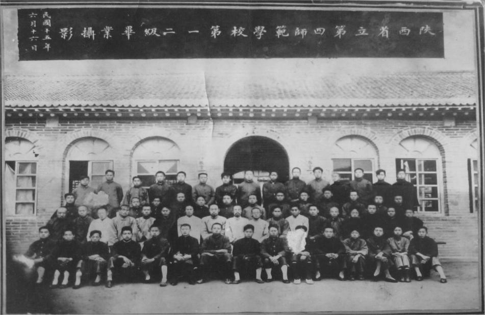 ▲1926年6月,陕西省立第四师范学校第一二级毕业摄影(二排左八为李子洲)