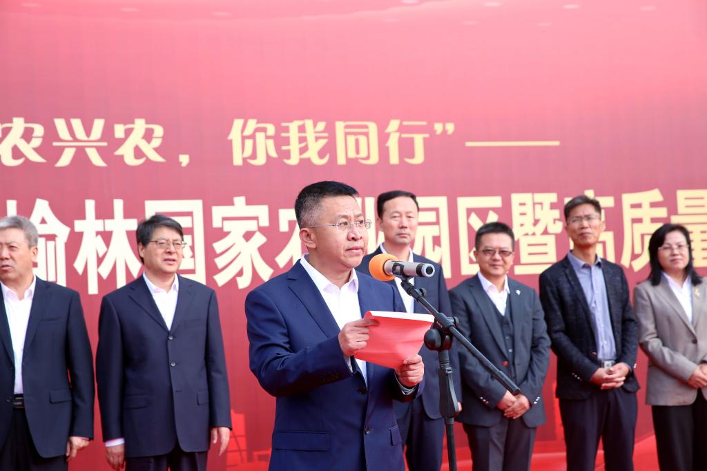 值此新中国75周年华诞之际,9月30日上午,bat365正版唯一官网现代农业产业学院入驻榆林国家农业园区暨高质量发展大会隆重召开。bat365党委书记张新柱,榆林市政府副秘书长成杰,榆阳区区委书记李忠宏;bat365党委副书记、校长康伟,榆林市科技局局长乔杰,陕西省林科院副院长石长春,榆林市农业局副局长张玉红、林草局副局长刘龙、畜牧局副局长姚小兵、农业科学研究院书记马翎,榆阳区副区长麻靖宇;bat365党委副书记、纪委书记姜劲波,副校长闫龙,榆阳区农业示范区管委会主任高之雁在主席台共同启动推杆见证bat365正版唯一官网现代农业产业学院入驻榆林国家农业园区。