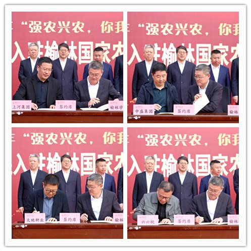 入驻仪式上,康伟分别与陕西上河集团有限公司、陕西新中盛农牧发展有限公司、陕西大地种业(集团)有限公司、榆林市榆阳区六六桃农业科技有限公司签订合作协议。