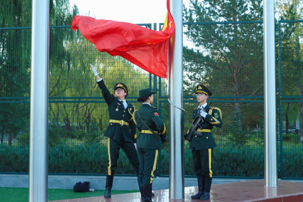 迎着清晨的第一缕阳光,国旗护卫队迈着铿锵有力、整齐划一的步伐,昂首挺胸护送鲜艳的五星红旗走向升旗台,全体师生肃穆而立,满怀崇敬之情向国旗行庄严的注目礼,伴随着《义勇军进行曲》奏响,在雄壮的国歌声中,五星红旗冉冉升起!这是一场对祖国的深情告白,是一次精神的震撼、思想的升华、心灵的洗礼。
