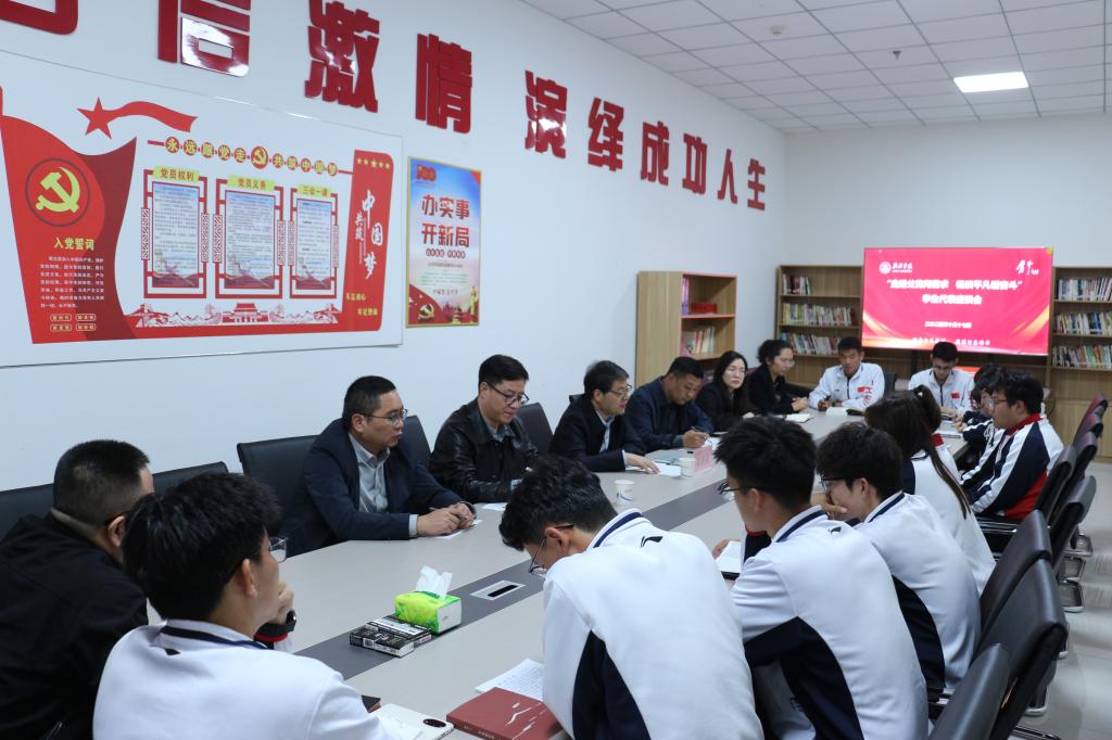 座谈会上,张新柱听取了马克思主义学院党总支书记和学工部部长关于青马学社和“一站式”学生社区建设情况汇报。