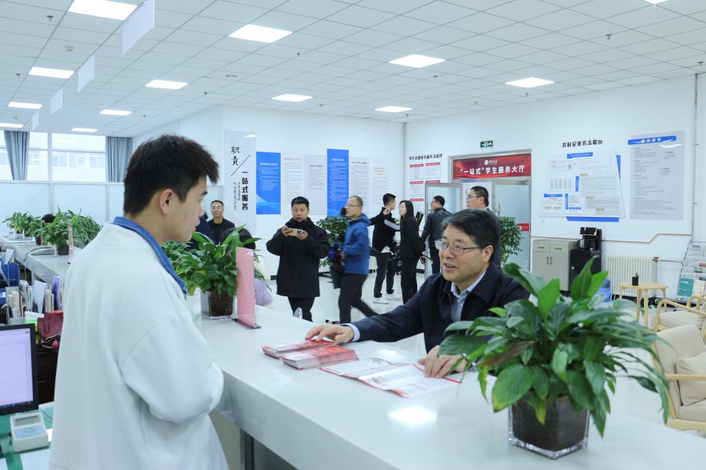 在体育学院新生宿舍6#626和马克思主义学院新生宿舍13#103,张新柱与同学们亲切交谈,详细了解学生的家庭情况、饮食习惯、学业规划、困难需求等,认真询问同学们对大学生活的适应情况和到校感受,鼓励同学们以积极的心态和良好的面貌适应大学校园生活,阅读经典著作,不断提高自己的认知水平、质疑能力和思辨能力。在禾丰园3楼“一站式”学生服务大厅,张新柱仔细查看了服务大厅整体空间布局、业务窗口设置情况,详细询问了工作流程和工作机制。他强调,“一站式”学生服务大厅是学校服务水平和管理效能的直接体现,要始终“围绕学生、关爱学生、服务学生”,坚持以学生发展为中心,优化服务流程,提高服务效率,提升服务质量,让学生办事更加省时省力。