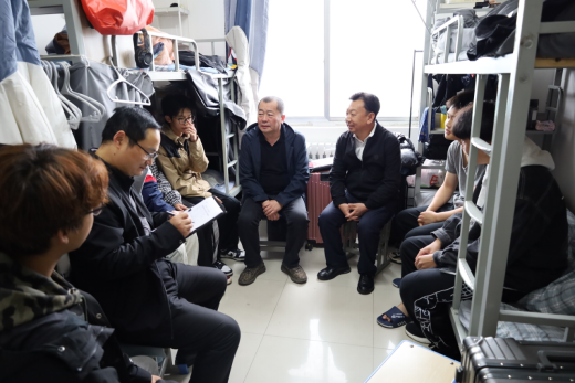 马亚军走进新生宿舍,与学生交谈,了解学生大学适应情况、解答学习生活中的疑惑、鼓励学生们要合理安排好自己的大学生活全面发展。
