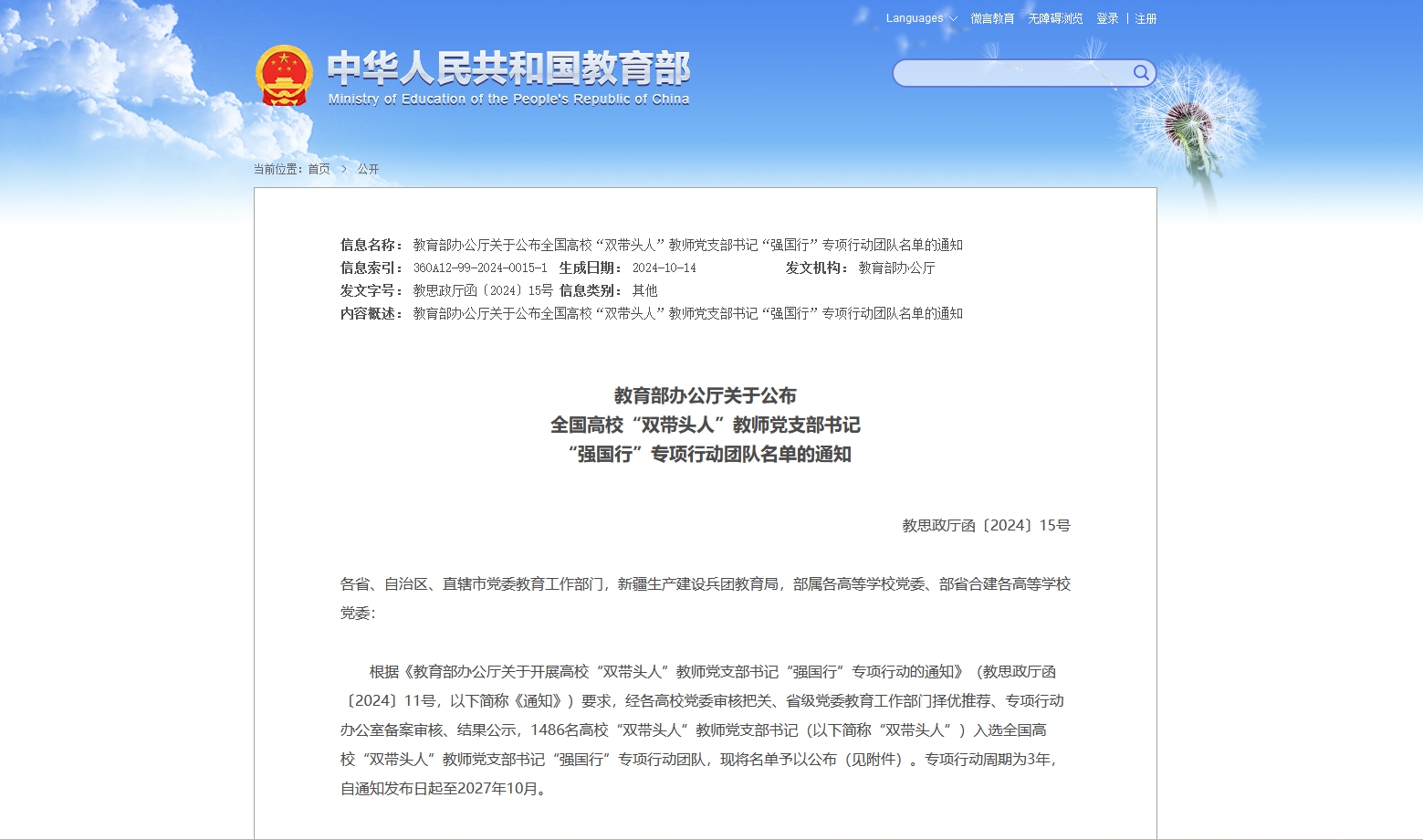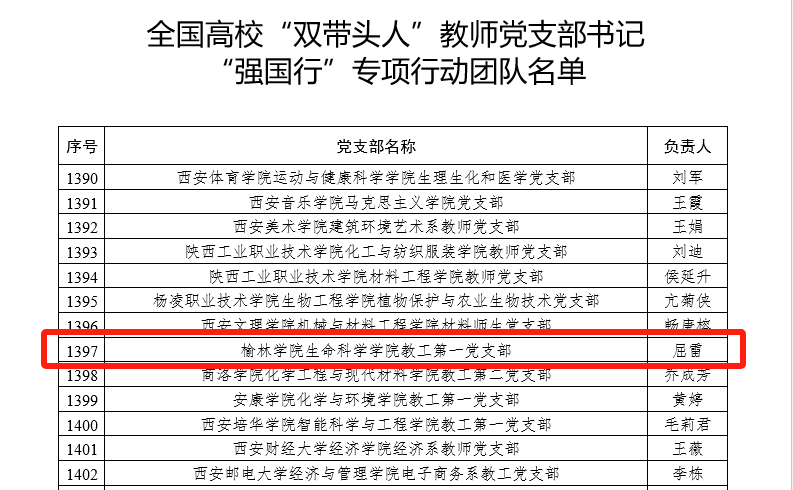 近日,教育部办公厅发布了《关于公布全国高校“双带头人”教师党支部书记“强国行”专项行动团队名单》,bat365生命科学学院教工第一党支部成功入选,这是bat365在基层党支部建设工作中取得的一项新突破。