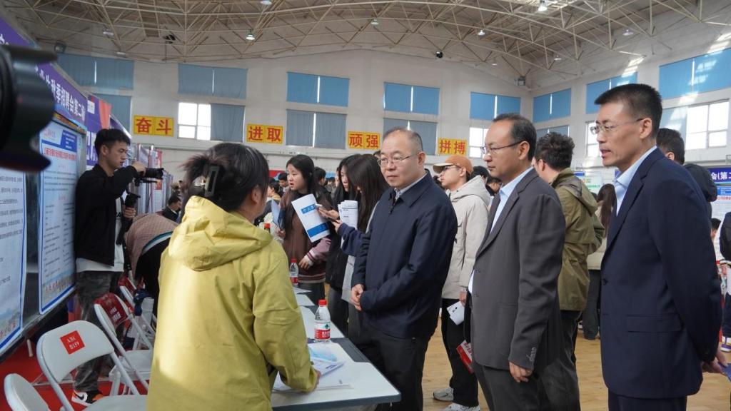 仪式结束后,与会代表现场观摩了招聘会现场,并同用人单位和毕业生互动交流,深入了解用人单位招聘和学生求职情况。