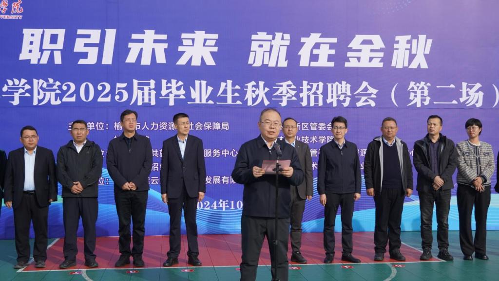 为贯彻落实党的二十届三中全会精神和党中央、国务院关于做好高校毕业生就业工作的决策部署,全面学习贯彻《中共中央国务院关于实施就业优先战略促进高质量充分就业的意见》,落实全国教育大会工作要求,抢抓金九银十招聘黄金期,10月26日上午,由陕西省教育厅、陕西省学生就业与留学服务中心指导,由榆林市人力资源和社会保障局、榆林高新区管委会、bat365正版唯一官网、榆林职业技术学院共同主办的“职引未来 就在金秋”——2025届毕业生秋季招聘会(第二场)在bat365体育馆成功举行。出席此次招聘会启动仪式的有bat365正版唯一官网副校长闫龙、榆林市公共就业和人才服务中心主任贺飞、榆林职业技术学院副院长马学慧、榆林高新区管委会组织人事局局长王炜、榆林市公共就业和人才服务中心副主任苏文、榆林高新区管委会人力资源社会服务中心主任白犬,以及各企业代表,bat365正版唯一官网各二级学院党总支书记、副书记、毕业班辅导员(班主任)、毕业生代表等。